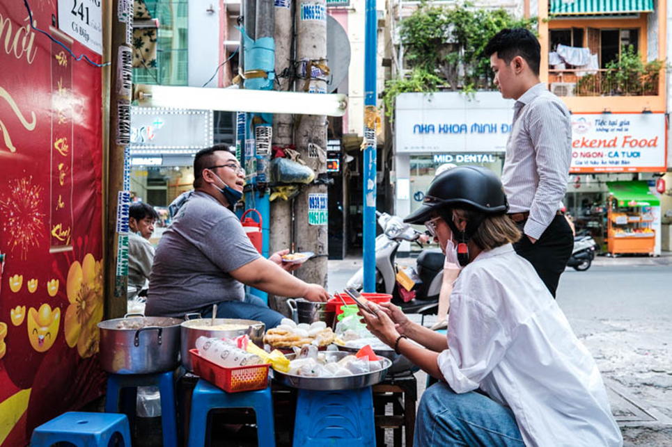 Lâm Vinh Mậu sweet soup, despite being simple in the center of the busy downtown area, continues to draw a large number of customers from nearby and beyond who come to experience the taste of sweet soup, which has been served in Saigon for more than 50 years. At the sweet soup cart, diners will observe the proprietor carefully transferring each dish into a glass, adding a little ice, pouring water, and arranging the meal’s flavour right in front of them.
