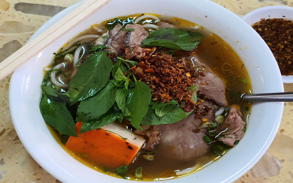 Bún Bò Huế (Hue – style beef noodle soup): Popular Vietnamese hot beef noodle soup with rice vermicelli and meat is Hue beef noodle soup.