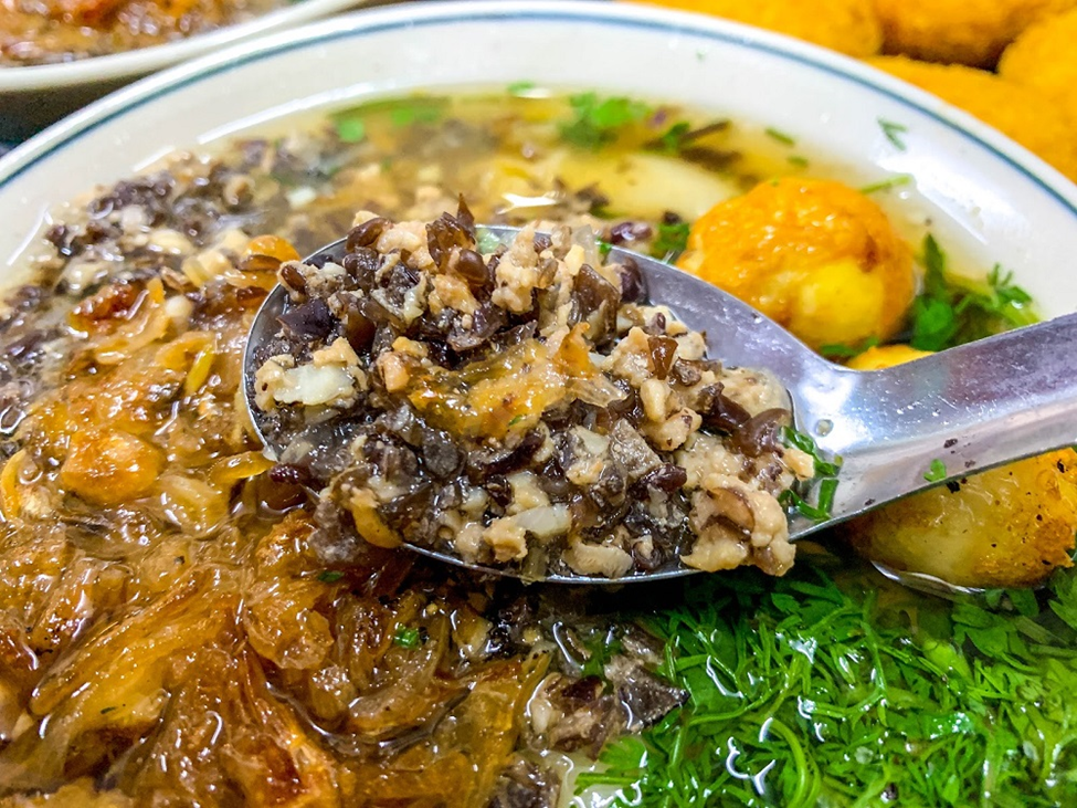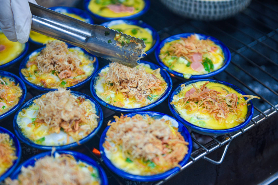 Trung Chen Nuong Co Ty is located at the intersection of Nguyen Quang Bich Street and Nguyen Van To Street, just behind Hang Da Market. When bringing this egg dish to Hanoi, Ms. Ty opted not to simply replicate the original but instead transformed it to make it more appealing and easier to enjoy.