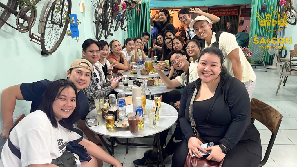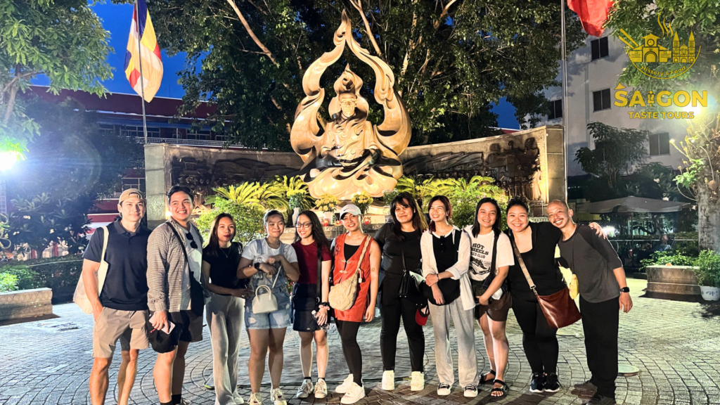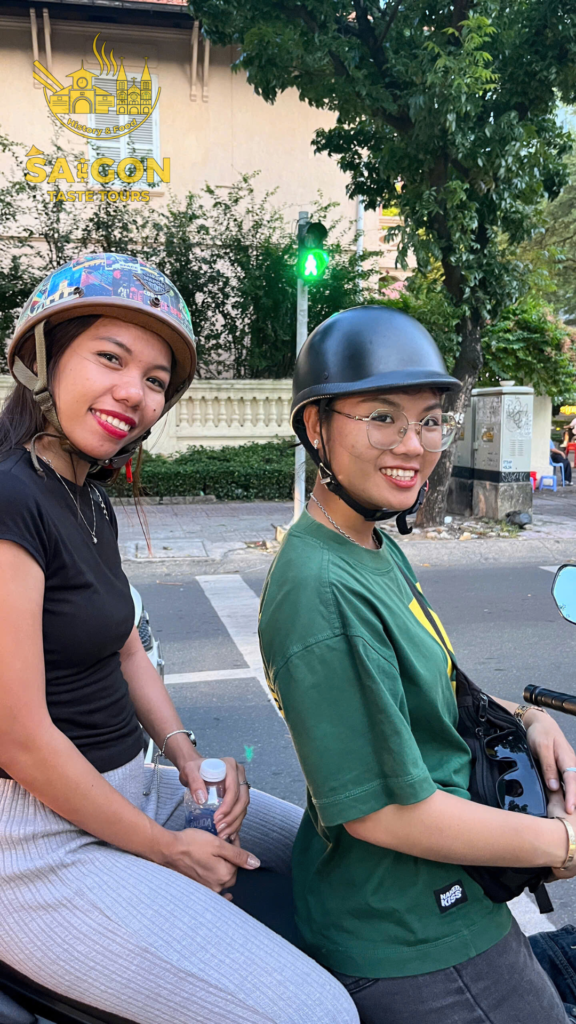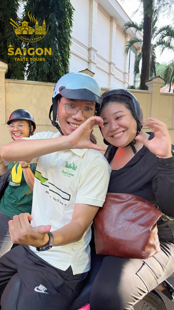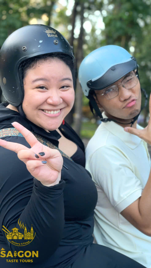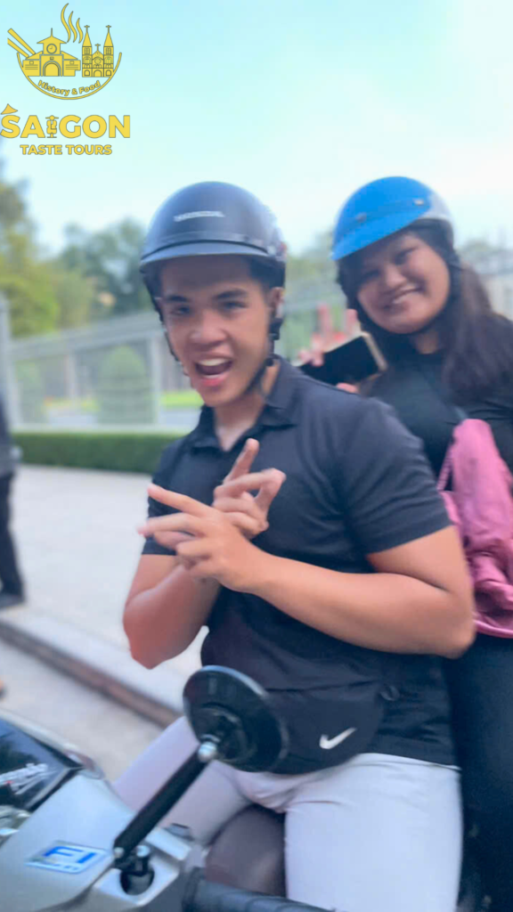 We had an amazing group of 11 guests from the Philippines who joined us for a 4-hour scooter sightseeing tour to explore the beauty of Ho Chi Minh City. To add more fun to the experience, I brought along a karaoke speaker for the group. Alvan was the only one brave enough to sing many songs while riding on the back of my scooter—what a star! The rest of the group was still a bit shy, possibly because it was their first time visiting Vietnam, and everything was so new to them. But no worries! Let’s give a big cheer for Evan and show him some love with a round of applause. Bravo, Alvan