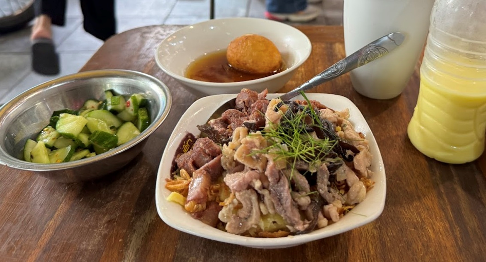 Bun Thang Cau Go is also known as Bun Thang Ba Duc. The restaurant has a relatively small space and does not have any elaborate signage, yet it still attracts a large number of food enthusiasts to experience its delicious offerings.