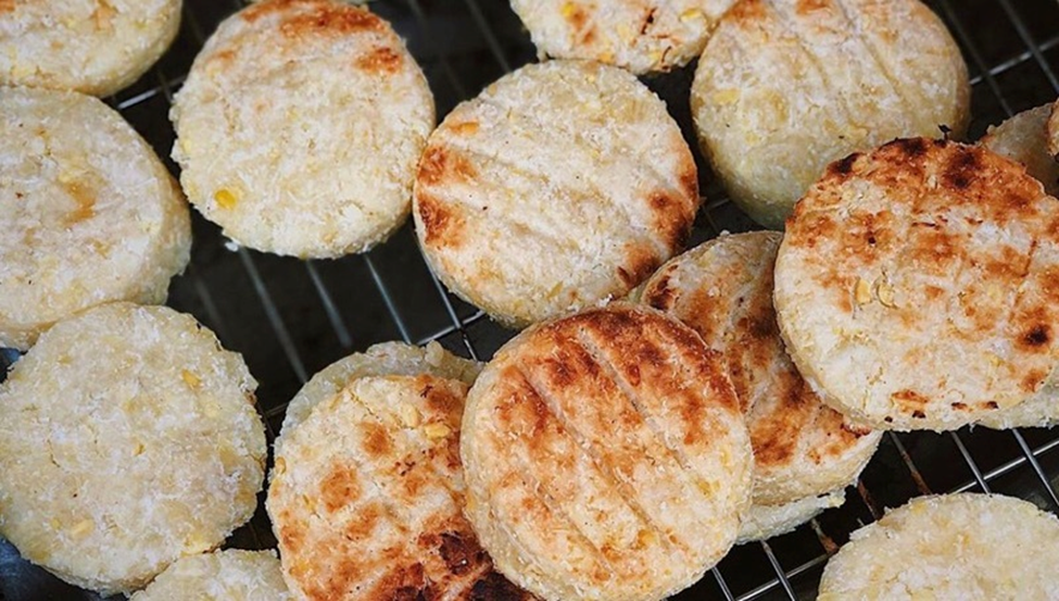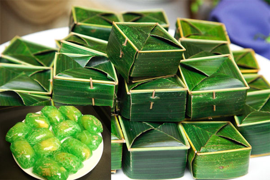 The cake’s sticky, glutinous exterior texture is achieved through the pounding and processing of a unique variety of green sticky rice. To give the core of the bánh cốm its unique sweet flavour, the mung bean paste within is marinated with sugar, coconut, and grapefruit juice.