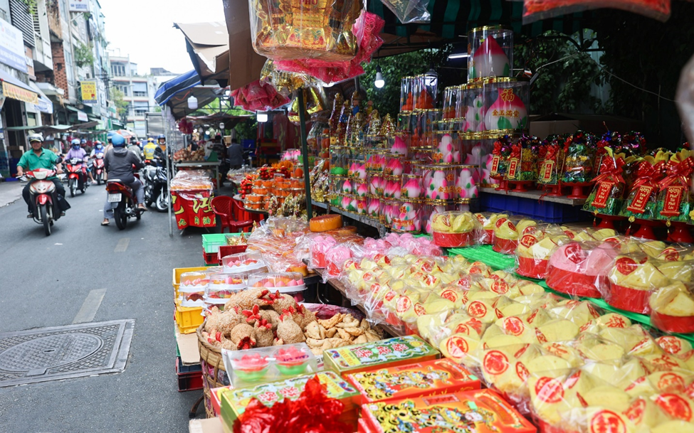 You can buy this cake at the market on Phung Hung Street, District 5, which sells many types of cakes such as pomegranate cake, sugar cake, fortune cake, bustling with buyers and sellers on the days before Tet.