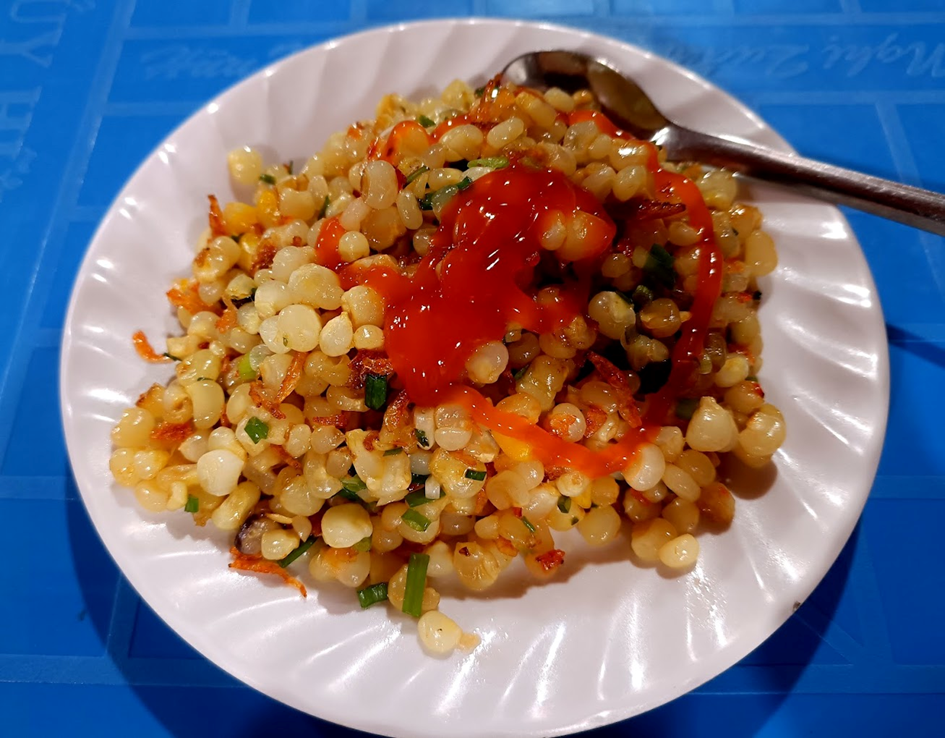 In addition to traditional stir-fried corn with butter, shrimp paste, and fried onions, you should try stir-fried corn with salted eggs.