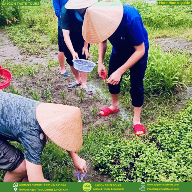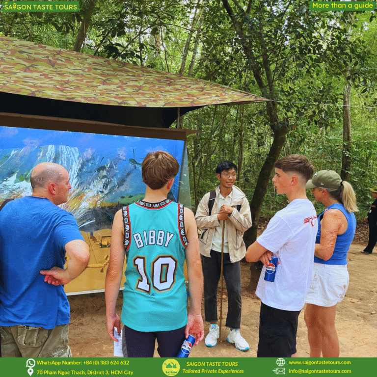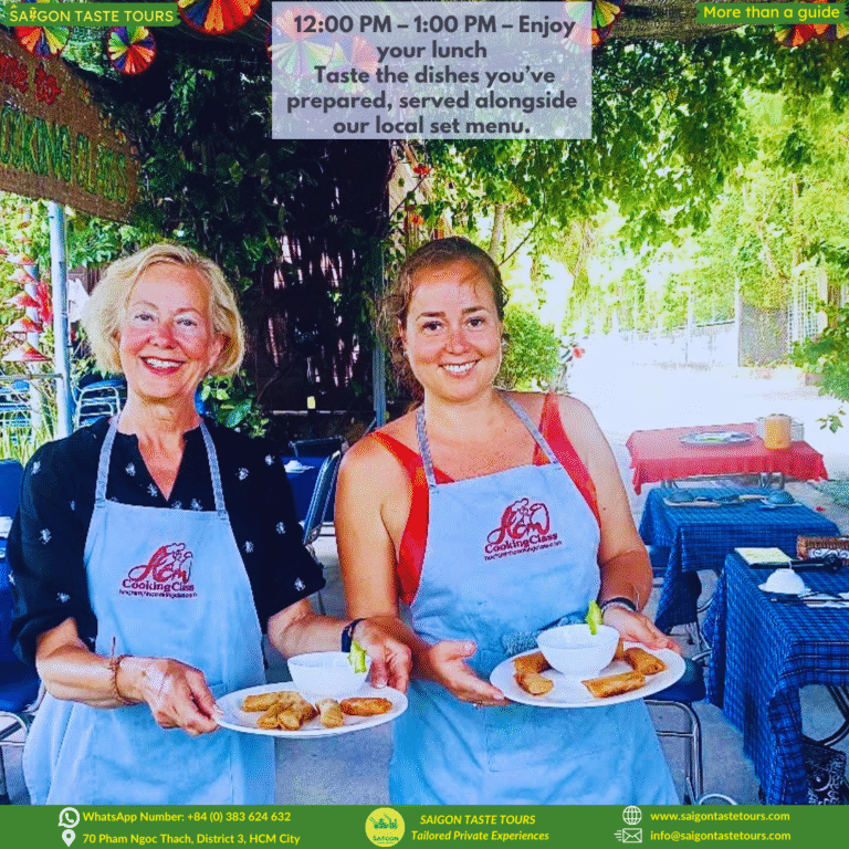 Looking for a unique way to spend one day in Ho Chi Minh City that goes beyond the usual tourist spots? This tour combines hands-on culture, history, food, and fun, all in one unforgettable day. Let us take you on an immersive journey through the Vietnamese countryside, where you’ll explore local farming life, learn to cook traditional dishes, and uncover the secrets of the famous Cu Chi Tunnels. At Saigon Taste Tours, we go beyond ordinary sightseeing. We provide personalized experiences designed around comfort, safety, and authenticity. Our local experts are more than guides, they’re like friends, sharing hidden gems, local flavors, and true stories of Vietnam.