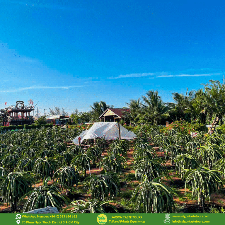 Take a break to enjoy a delicious Vietnamese lunch at a local restaurant, tasting authentic regional flavors. Afterward, stop at a dragon fruit farm, where you’ll see how this iconic fruit of southern Vietnam is grown.