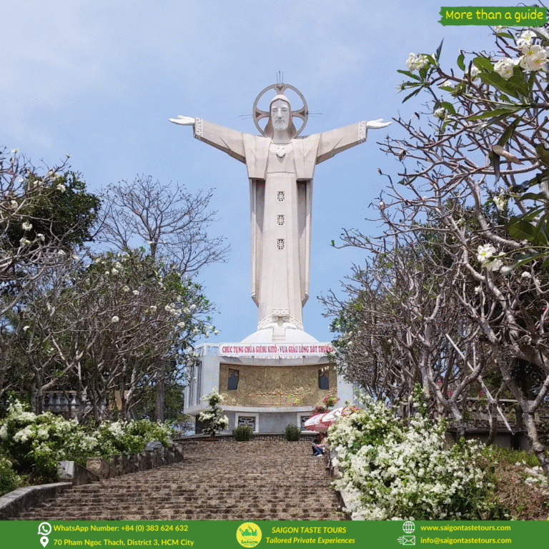 Upon arrival, our first stop is Cap Saint Jacques, where you’ll capture the first glimpse of this historic seaside town. Next, challenge yourself with a climb up the hill to the towering Jesus Christ Statue, one of the tallest in Asia, and be rewarded with sweeping views of the ocean and city below.