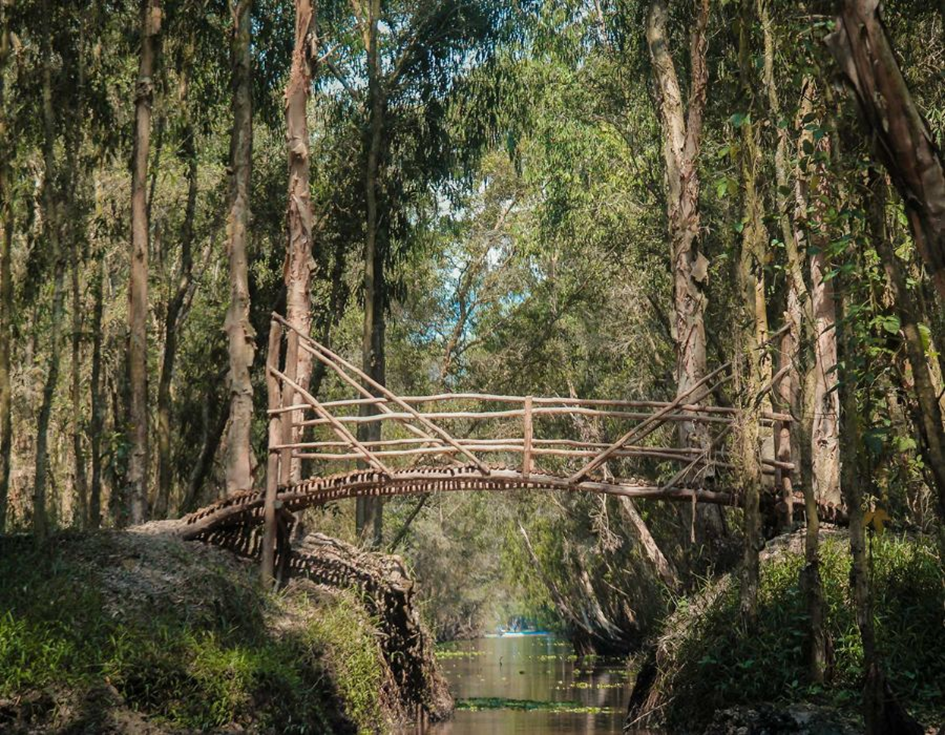 You can rent a boat to go downstream to explore the landscape of U Minh Ha National Park.