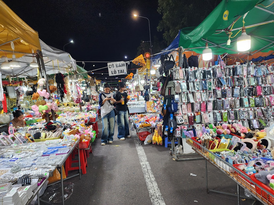 When coming to this market, you will find two main areas: shopping and cuisine with a variety of goods, rich with more than 300 stalls operating at the same time.