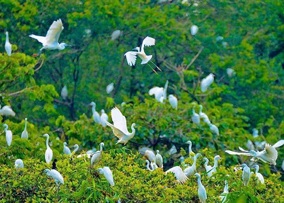 Tan Long Bird Garden, located in Long Binh commune, Nga Nam Town, is an ecological tourism destination managed by a local resident. When visiting the bird garden, tourists can enjoy a peaceful atmosphere and observe various types of birds such as herons, white storks, buffalo herons, and open-billed storks.