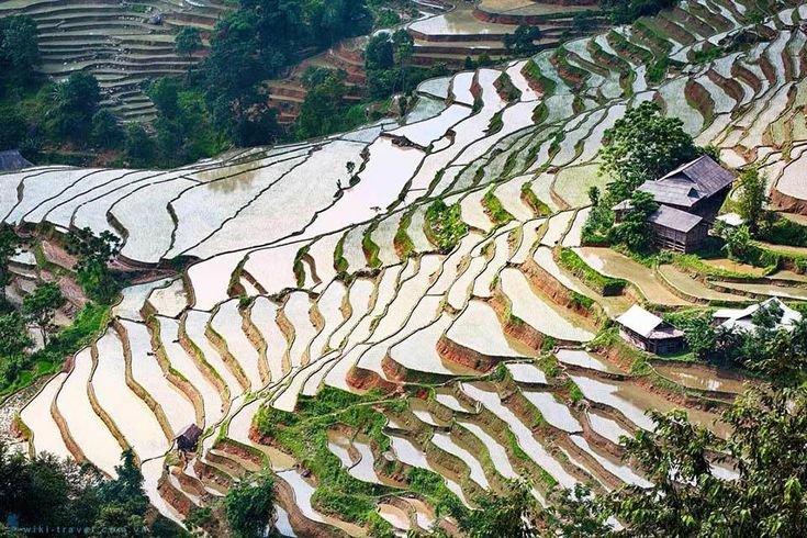 – May – June: The rice terraces shimmer under the summer sun during the water pouring season.