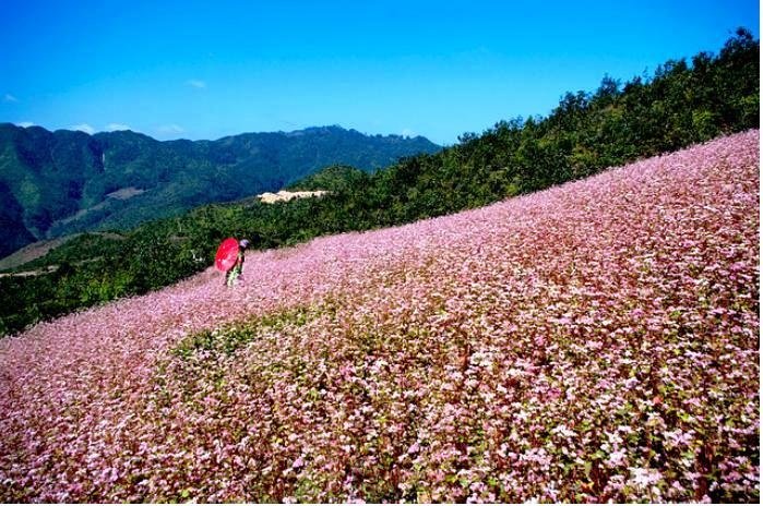 – October – November: When the pink buckwheat flowers bloom, covering the karst plateaus.