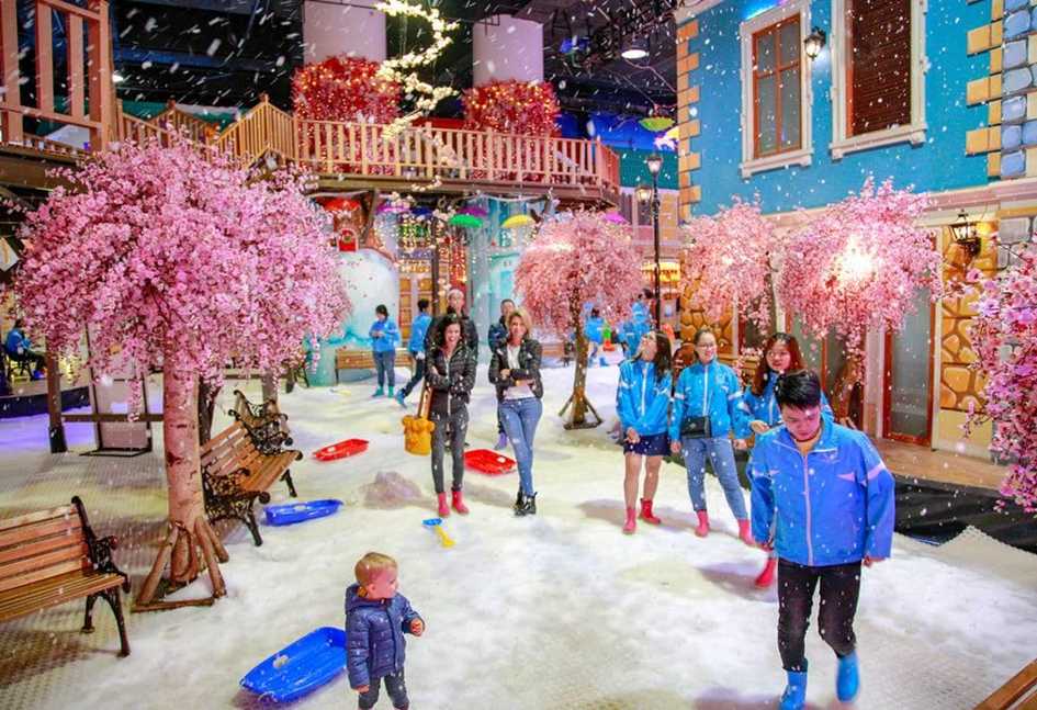 Snow Town is a famous indoor artificial snow park in Saigon. Snow Town features various separate areas that cater to a range of exciting recreational activities such as skiing, snowman building, handmade crafts, relaxation, dining, and event hosting.