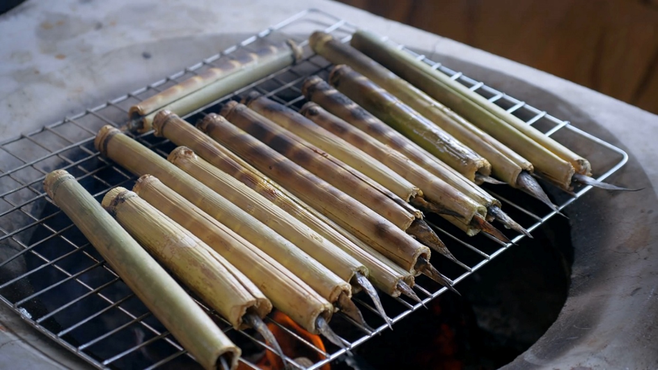 Enjoy the goby grilled in reed tubes with aromatic herbs, slices of green banana, and a dipping sauce like chili salt with lime or your favorite condiment for an unforgettable culinary experience.